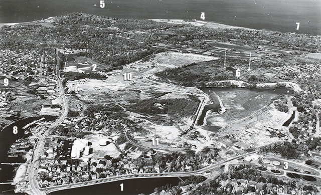 It’s 1959 and you are in a small plane, taking pictures of the property that is about to become developed into Soundview.  For many decades, this area has been mined for the fine quality of its sand.  This "Cow Bay Sand" was sent directly to New York City by the barge load, 6 days per week.